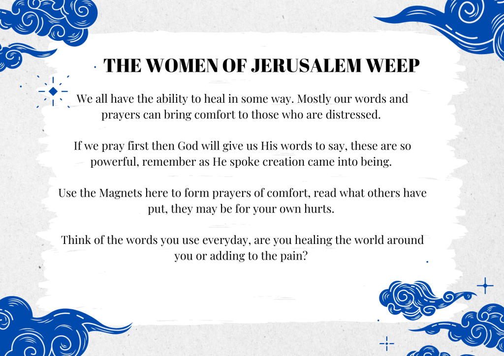 It’s better if this is in a quieter area, even better if each person does this station alone with time to reflect without feeling watched.